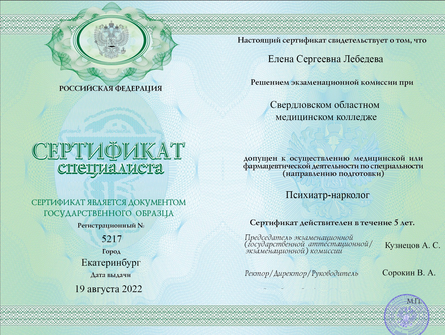 Елена Сергеевна Лебедева врач нарколог клиники доктора Стукаловой на Вятских Полянах